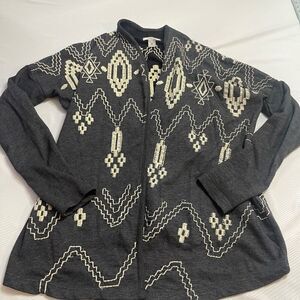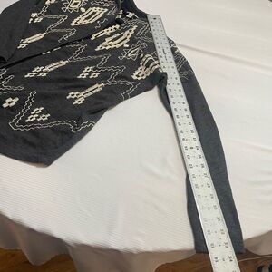 Lucky Brand Dark Grey Lucky Lotus Embroidered Cardigan Size Medium