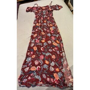 Lucky Brand Dark Red Off the Shoulder Spaghetti Strap Maxi Dress, Size XS