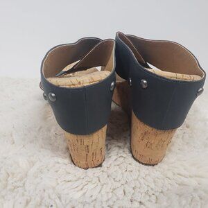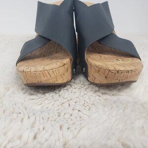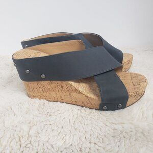 Lucky Brand Dark Slate Blue Cork Wedge Sandals Size 8.5