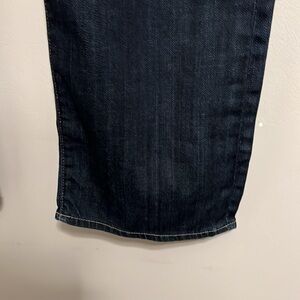 Pre owned good condition one flaw in photos in photos near pocket. Relaxed fit straight leg has whiskering across front