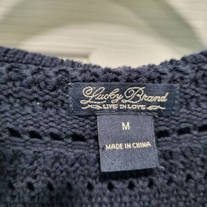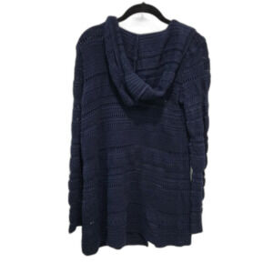 Chic open-front design. Deep blue hue. Perfect for layering. Comfortable and stylish.