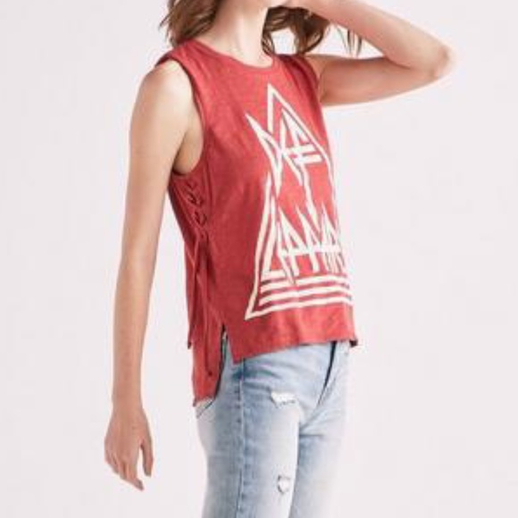 Lucky Brand Def Leppard Distressed Side Laced Up T