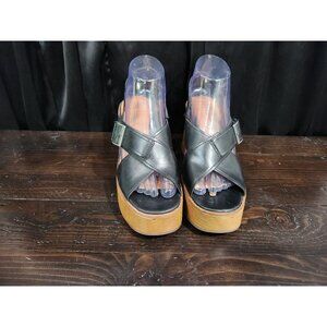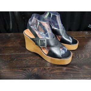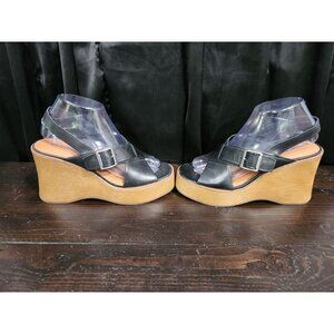 Lucky Brand Delaynee Blck Leather Wood Wedge Sandals/Sz. 7.5M NWOB