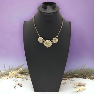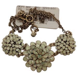 Lucky Brand Delicate Enamel Flowers Pale Green Adjustable Aged Brass Necklace