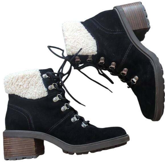 These Lucky Brand Demia suede boots in size 9 Medium are a stylish and versatile addition to your footwear collection! In excellent condition, these black and white boots feature a sleek design with a convenient side zipper for easy on and off. The soft suede material adds a luxurious feel, while the classic color combination makes them perfect for pairing with jeans, skirts, or dresses. Whether you're dressing up or keeping it casual, these boots will elevate any outfit. Don’t miss out on these high-quality Lucky Brand boots, ready to bring both style and comfort to your wardrobe!