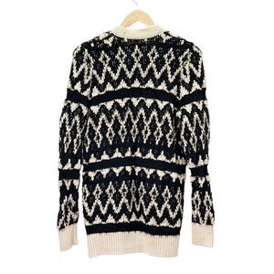 Lucky Brand Diamond Fair Isle Long Boho Cardigan Black & Cream Womens Size Small