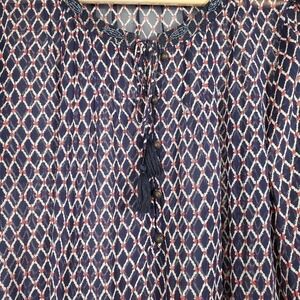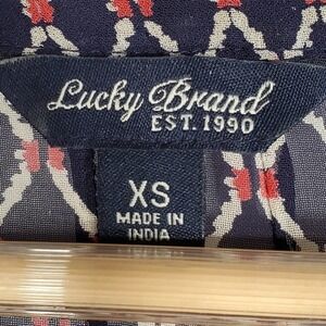 Lucky Brand Diamond Pattern Peasant Top Beaded Navy Red White Size XS