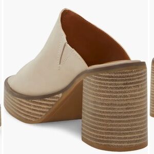 Lucky Brand Dinali Platform Leather Block Mules Beige NEW
