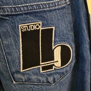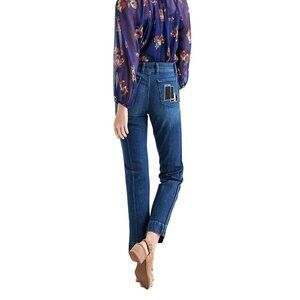 Lucky Brand Disco Drainpipe Jeans feature a unique patch on the back pocket, providing a stylish and distinctive look. These jeans are perfect for fashion-forward individuals seeking comfort and a trendy design.