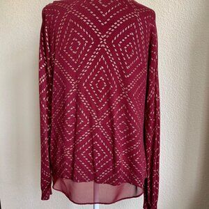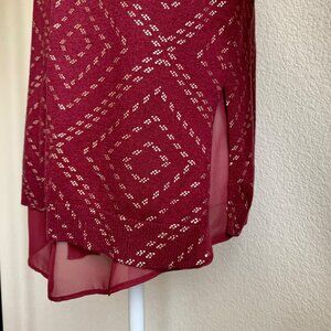 Lucky Brand Dotted Diamond Sweater with Chiffon Underlay Size L