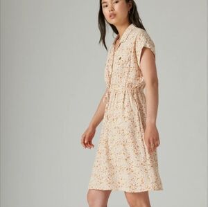Lucky Brand Dress Midi Shirt Buttons Short Sleeves NWT Size M Floral Pockets