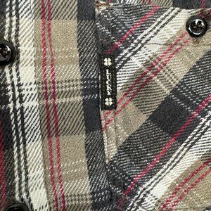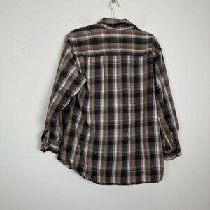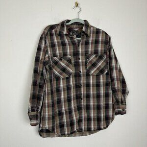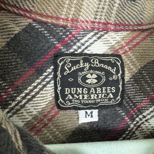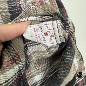 Lucky Brand Dungaree Men’s Brown Plaid Flannel Button Up Shirt Size Medium USA