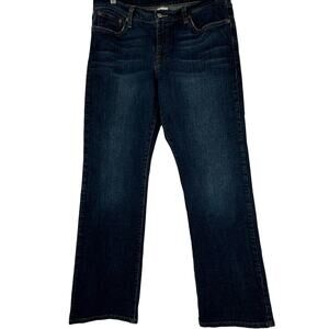 Straight leg; dark wash