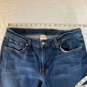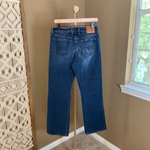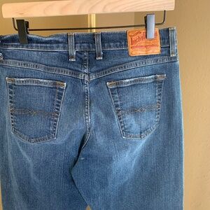 Authentic Lucky Brand Style: Classic jeans with a relaxed fit, featuring durable stitching and a timeless blue wash.