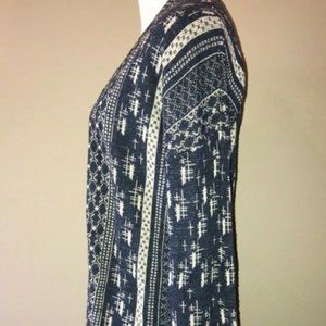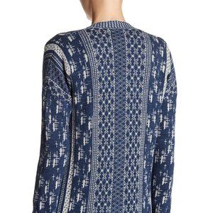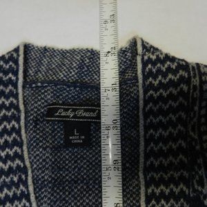 Lucky Brand Woman's Cardigan Sweater Blue White Geometric Stitch Pattern