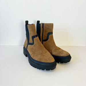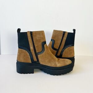 Lucky Brand Eabile Bootie Leather Lug Sole Boots Cognac & Black Womens Size 8.5