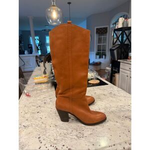 Lucky Brand Ebbie Tan Leather Heeled Boot sz 12 EUC