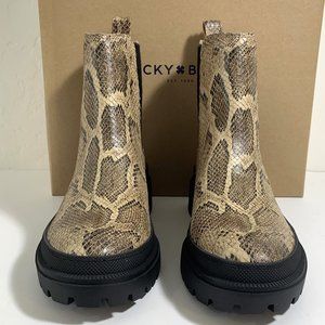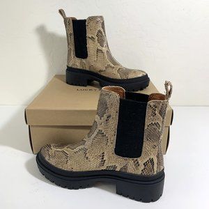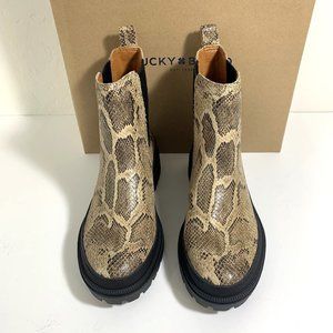 NEW Lucky Brand Ellerey Chelsea Lug Boots Snake Print Leather Booties Size 8