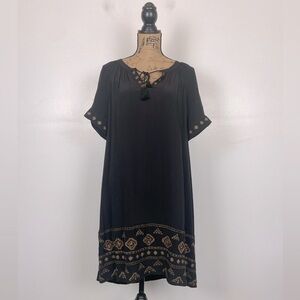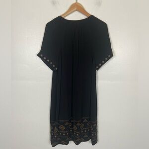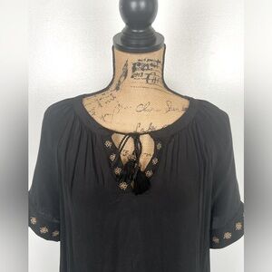 Lucky Brand Embellished Beaded Boho Tunic Midi Dress Size M Black Short Sleeves
