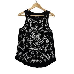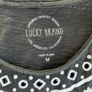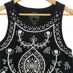 Lucky Brand Embroidered Eyelet Tank - Black Multi - size medium. Raw rolled edge. 100% cotton.