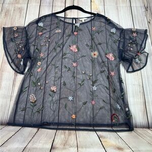 Lucky Brand Embroidered Fairycore Sheer Top - Dark Gray. Whimsigoth. Twee.