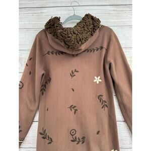 Item: Lucky Brand Embroidered Faux Fur Trim Hoodie Duster Dress Womens Small Brown