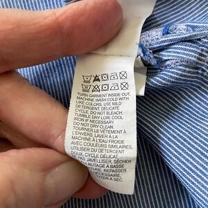 Stylish blue striped shirt. Comfortable and versatile.Excellent preowned condition with no flaws.