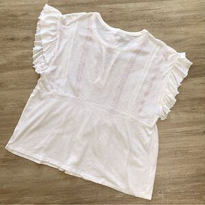 Lucky Brand Embroidered Flutter Sleeve Peasant Blouse