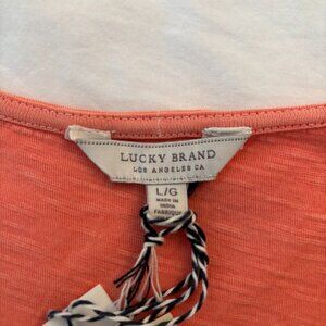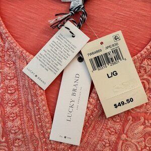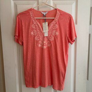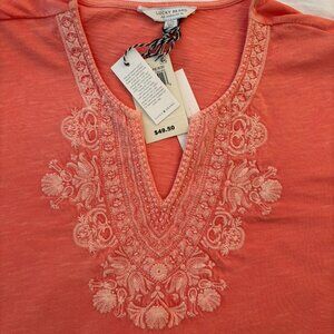 Lucky Brand. Short sleeves. Embroidered front. Salmon color. NWT.