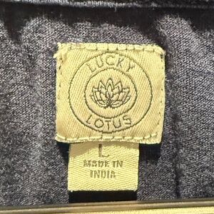 This crew neck tee has a beautiful Hamsa hand embroidered on the front. I've brightened the pics a bit so zoom in to see the pretty detail. Also note, "Lucky Lotus" is a collection under the broader Lucky Brand name.