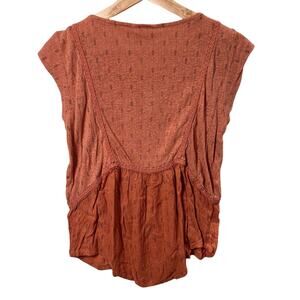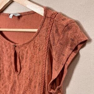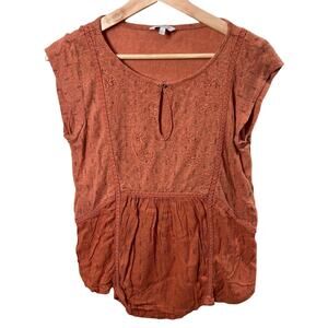 Lucky Brand Embroidered Keyhole Cut Out Top Pink Short Sleeve Blouse Size S