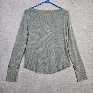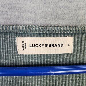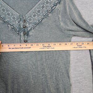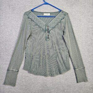 Lucky Brand Embroidered Mesh Yoke Henley Balsam Green Top Size L