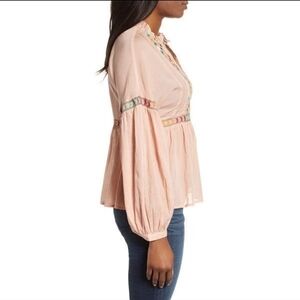 Lucky Brand Embroidered Peasant Top Coral - Medium