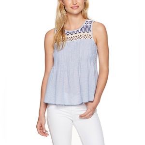 Lucky Brand Embroidered Pin-tuck Tank Top