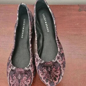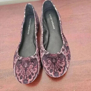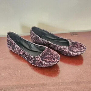 Lucky Brand Emmie Velvet Purple Paisley Tapestry Ballet Flats, Size 9.5