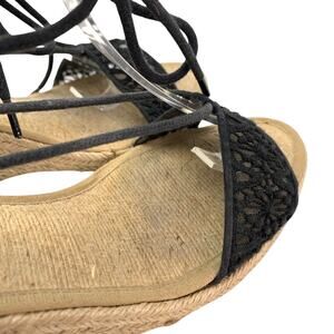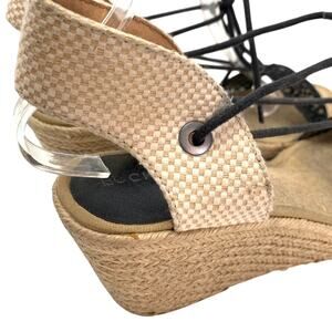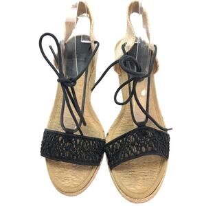 Lucky Brand Espadrille Wedge Sandals Shoes Black Tan Boho Summer Vacation 8.5