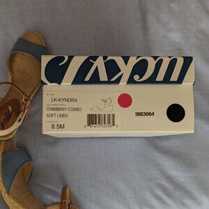 Lucky Brand chambray espadrilles , Never Worn! Size 8.5 Medium width. The color is a pale blue. The wedge at the highest part is 2.5 inches. These are in Excellent condition. Perfect for spring & summer! I am open to offers!
