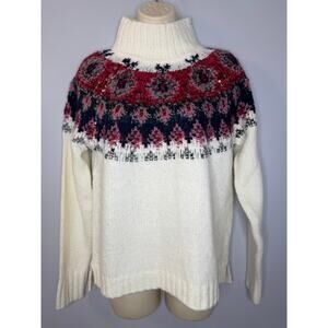 Lucky Brand Fairisle Turtleneck Sweater White Red Printed Relax Women's XS