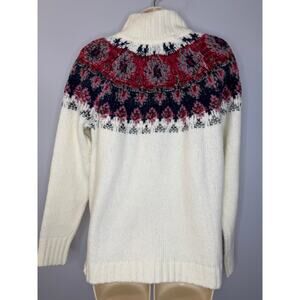 Lucky Brand Fairisle Turtleneck Sweater White Red Printed Relax Women's