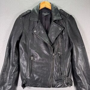 Lucky Brand Faux Leather Jacket Women XS Black Zip Button Heavyweight Moto Biker