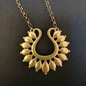 Lucky Brand Faux Turquoise Lotus Pendant Necklace Matte Gold Tone 32”