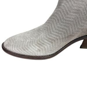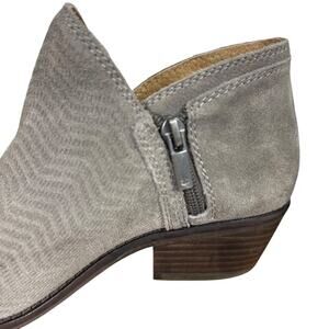 Lucky Brand Fhuna Gray Suede Side Zip Chunky Heel Booties Ankle Boots Shoes 6.5