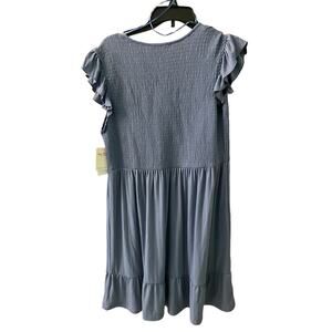 Lucky Brand Fit & Flare Dress Women's XL Blue Polyester Stretch Smocked V-Neck