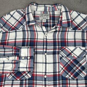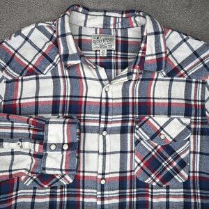 Lucky Brand Flannel Pearl Snap Shirt Santa Fe Western Mens Large Cowboy Outdoor