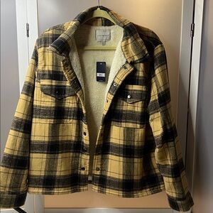 Lucky Brand Flannel Sherpa lined jacket Women's Size Large snap Front NWT