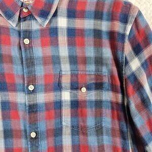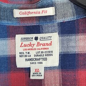Lucky Brand Flannel Shirt Mens XL Red White Blue Plaid California Fit Western