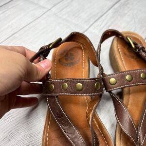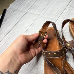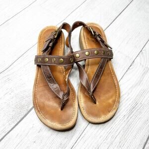 Lucky Brand Flat Sandals Brown Round Toe Prong Slingback Leather Size 8