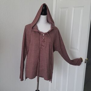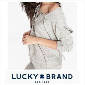 Lucky Brand Fleece Lace Up Pullover Hoodie Sweater