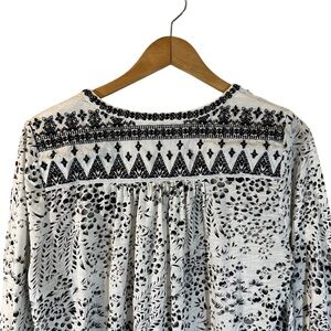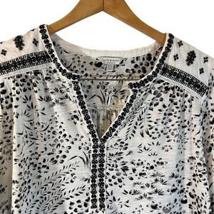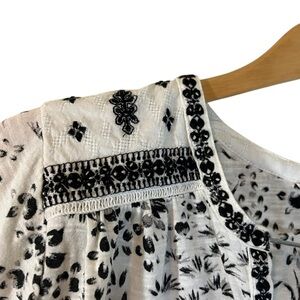 Lucky Brand Floral Blouse Plus 1X White Black Embroidered Boho Patterned Peasant