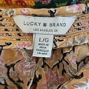 Lucky Brand Floral Bohemian Peasant Hi-lo Blouse Sz Lg